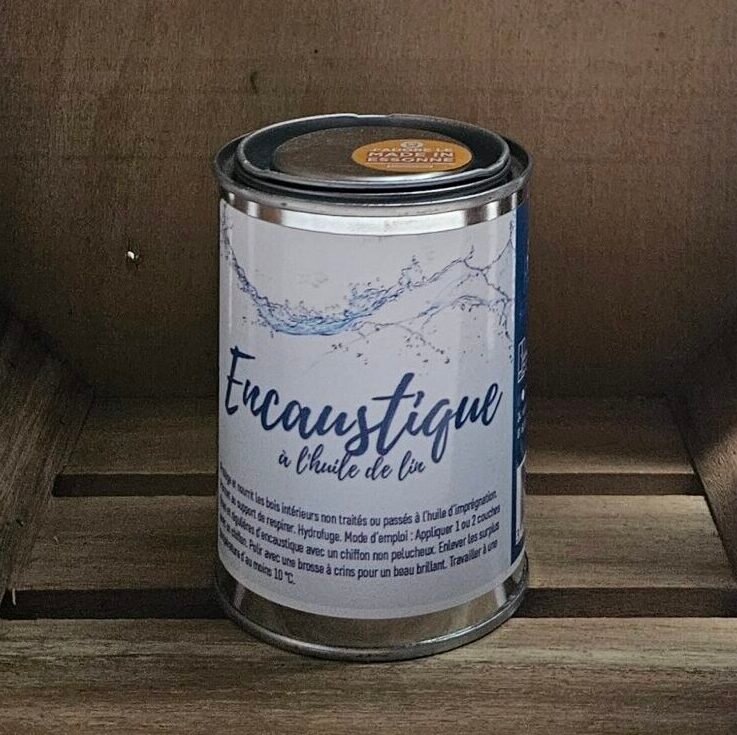 Pâte encaustique fabriquée par nos soins et composée de cire d’abeille de région parisienne, d’essence de térébenthine pure gemme (issue de la distillation de résine de pin maritime) et d’huile de lin première pression à froid issue de nos graines.